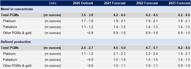 Despite the effects of the pandemic, metal in concentrate (M&C) production returned to close to normal operating capacity in the second half of 2020. As a result, M&C production for 2020 will be between 3.6 – 3.8 million PGM ounces.