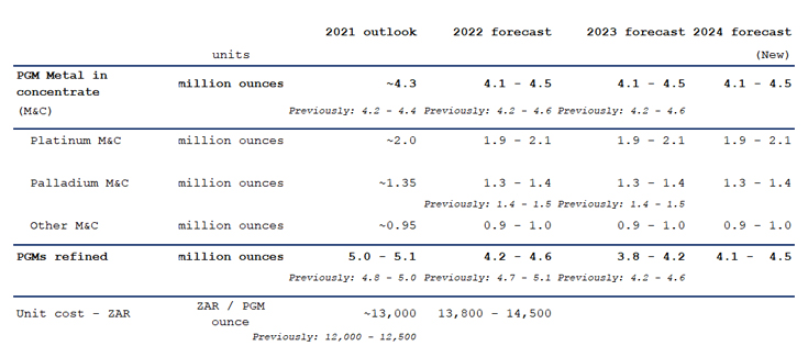 Due to the strong refined production performance in 2021, resulting in the majority of the built-up WIP inventory being processed, refined production guidance for 2022 has been revised to 4.2–4.6 million PGM ounces, to reflect the expected M&C production, the processing of the lower WIP inventory, and the scheduled Polokwane smelter rebuild.
